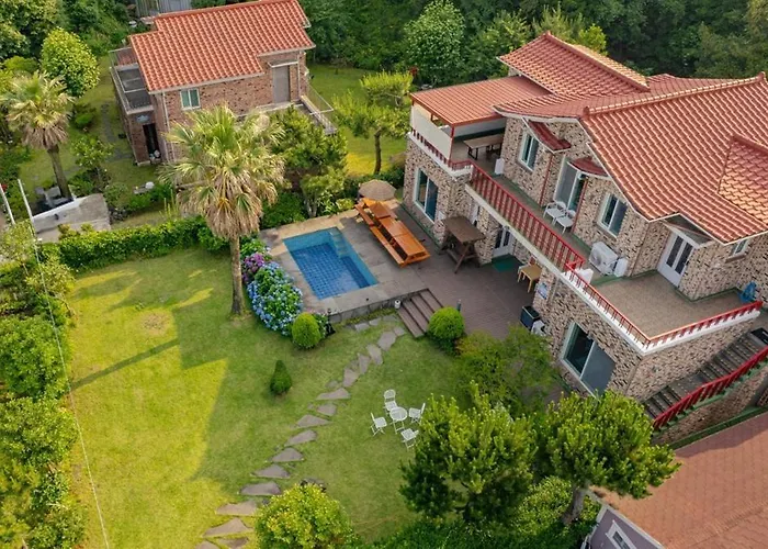 Located around a 10-minute drive from the natural monument "Bijarim Forest", Jeju Olle House Villa offers karaoke for guests' entertainment.